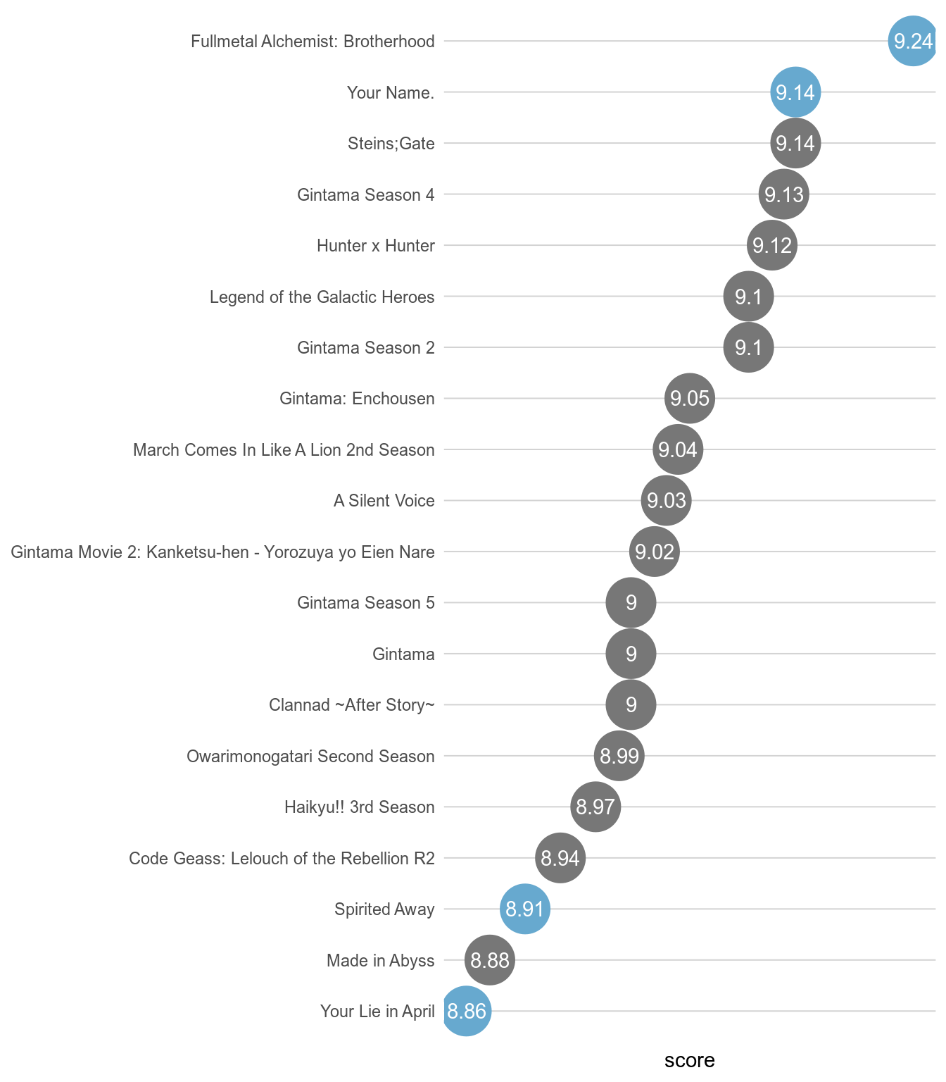 textGrob(label = "And 9 out of the top 20 fan favorite animes.",